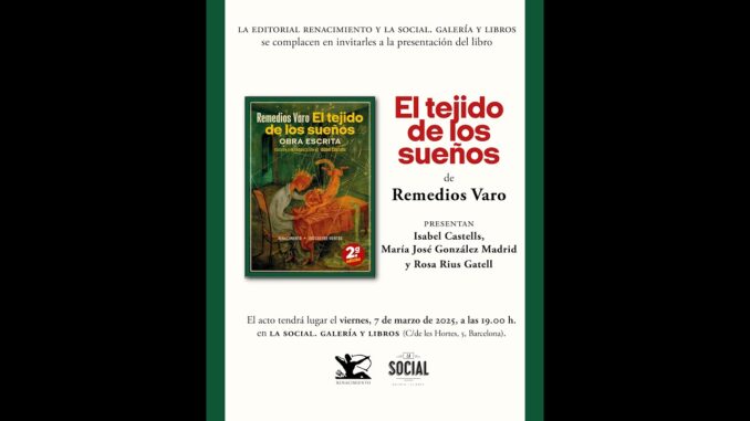 Presentació a la llibreria La Social a Poble Sec, el pasat 7 de març de 2025. La seva editora Isabel Castells, presenta amb Maria José González i Rosa Rius aquesta nova edició amb la editorial Renacimiento-Los cuatro vientos. Hablar de Remedios Varo (Anglés, Gerona, 1908-México, 1963) implica reconstruir el panorama del exilio republicano español y trasladarnos a un universo tan inconfundible como cautivador en el que la imagen y la palabra se conjugan en una peculiar concepción del concepto de “poesía”. La obra de Remedios Varo se exhibe ahora en los principales museos del mundo y es uno de los muchos ejemplos de la presencia efectiva de las mujeres en el Surrealismo. En sus lienzos desfilan personajes etéreos, que trabajan recluidos en sus laboratorios (Armonía, Ciencia inútil o el alquimista), deambulan en busca del conocimiento (Exploración de las fuentes del Río Orinoco) o ironizan sobre la vida cotidiana de las mujeres (Mimetismo, Tailleur pour dammes) y la sociedad mercantilista (Banqueros en acción, Au bonheur des dammes), todo ello en espacios difusos y en un ambiente onírico presidido por el humor, la ternura y, en ocasiones, el desasosiego.