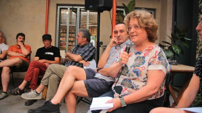 Vila de Sants 6 /6/2025.- Homenatge pòstum a l’historiador i agitador rural Pere López a través de la veu de les seves amistats i companyes de lluita, fent un repàs a la seva obra on va abordar el conflicte urbà i la història de les lluites socials a Barcelona. Acte realitzat a La Comunal de Sants on es va presentar la re-edició del seu primer llibre un Verano con mil Julios de Virus Editorial.