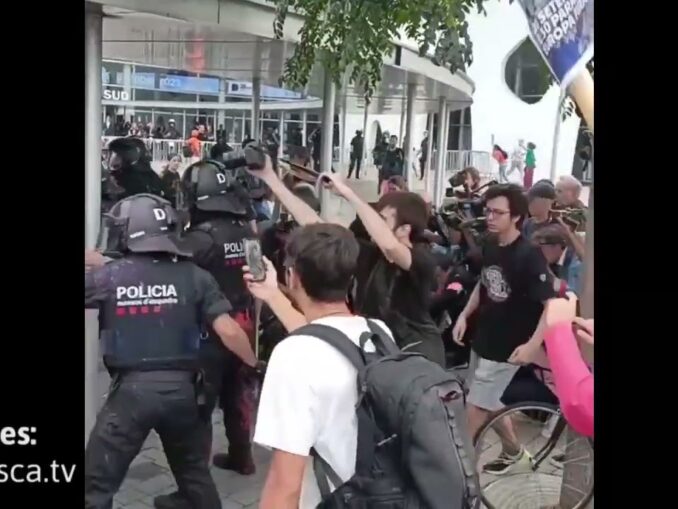 Barcelona, 15/10/2025.- Seguiment des d’aprop de les mobilitzacions al carrer durant la Vaga contra el Genocidi de Gaza, on hem ...